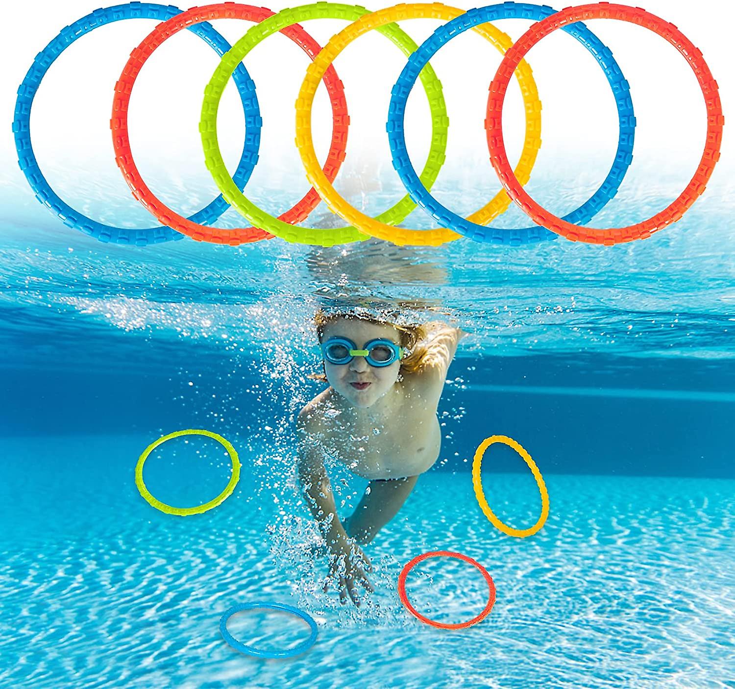 6 Pack Pool Diving Toys Water Swimming Pool Diving Rings Toys for Kids Colorful Easy to Find and Grab (Blue)