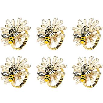 6 Daisy Sunflower Napkin Rings, Gold Bee Napkin Ring Holders For Formal Or Casual Dinning Table De