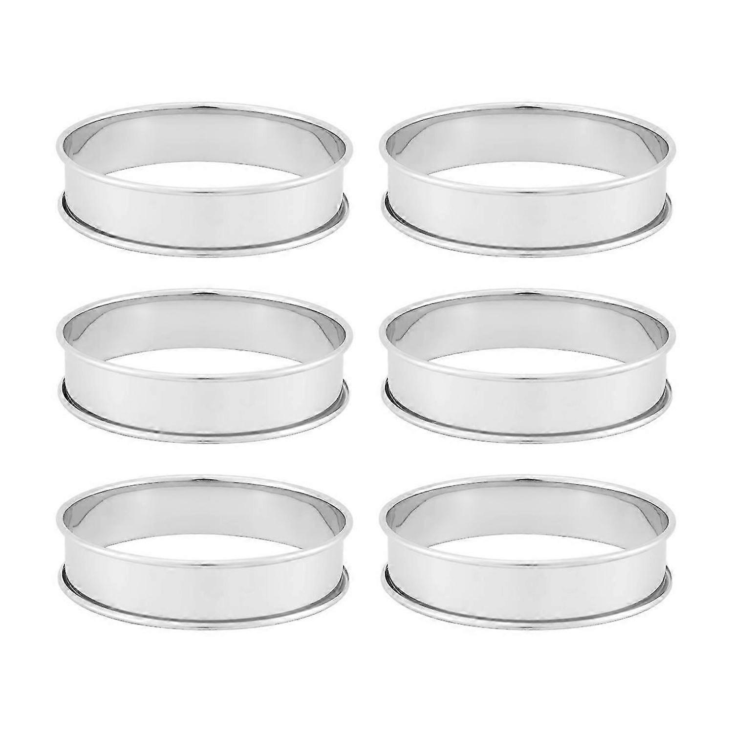6 Pack 4 Inch Double Rolled English Muffin Rings, Stainless Steel C pet Rings, Tart Rings, Round