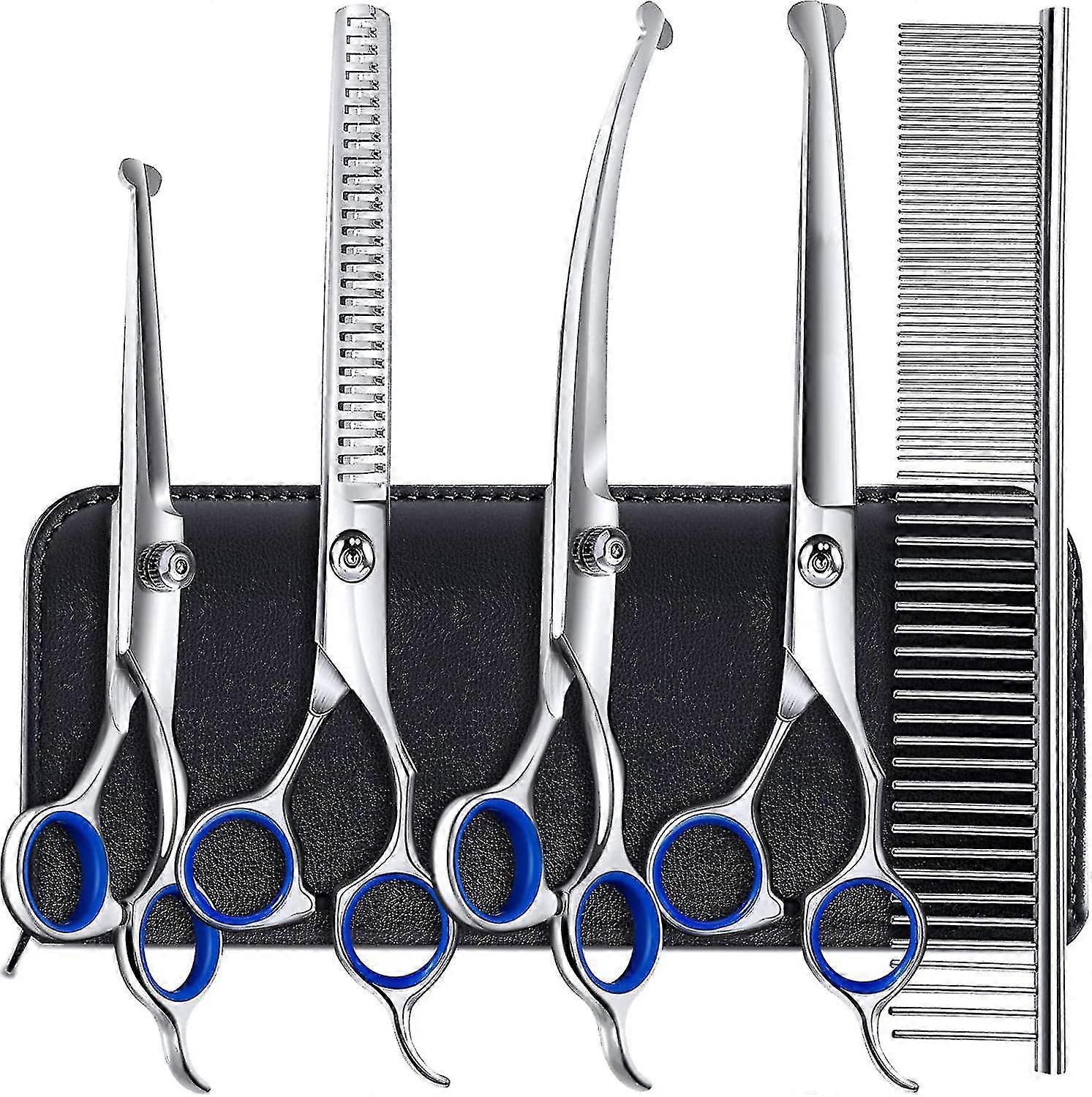 6 In 1 Professional 4cr Stainless Steel Safety Round Tip Dog Scissors For Grooming, Heavy Duty Titanium Coated Pet Grooming Scissor For Dogs, Cats And