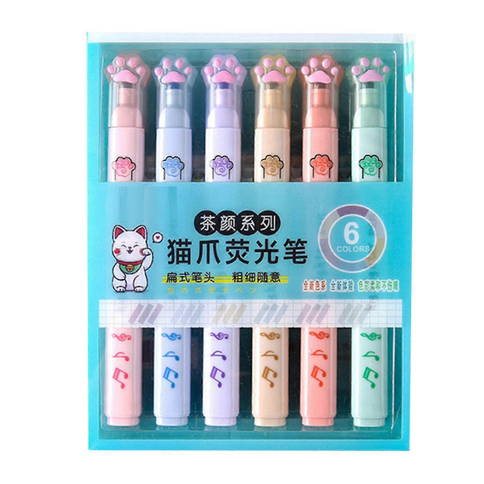 6 Piece Cat's Claw Cover Highlighter Set Portable Quick Dry Marker Pens For Boys Girls Kids
