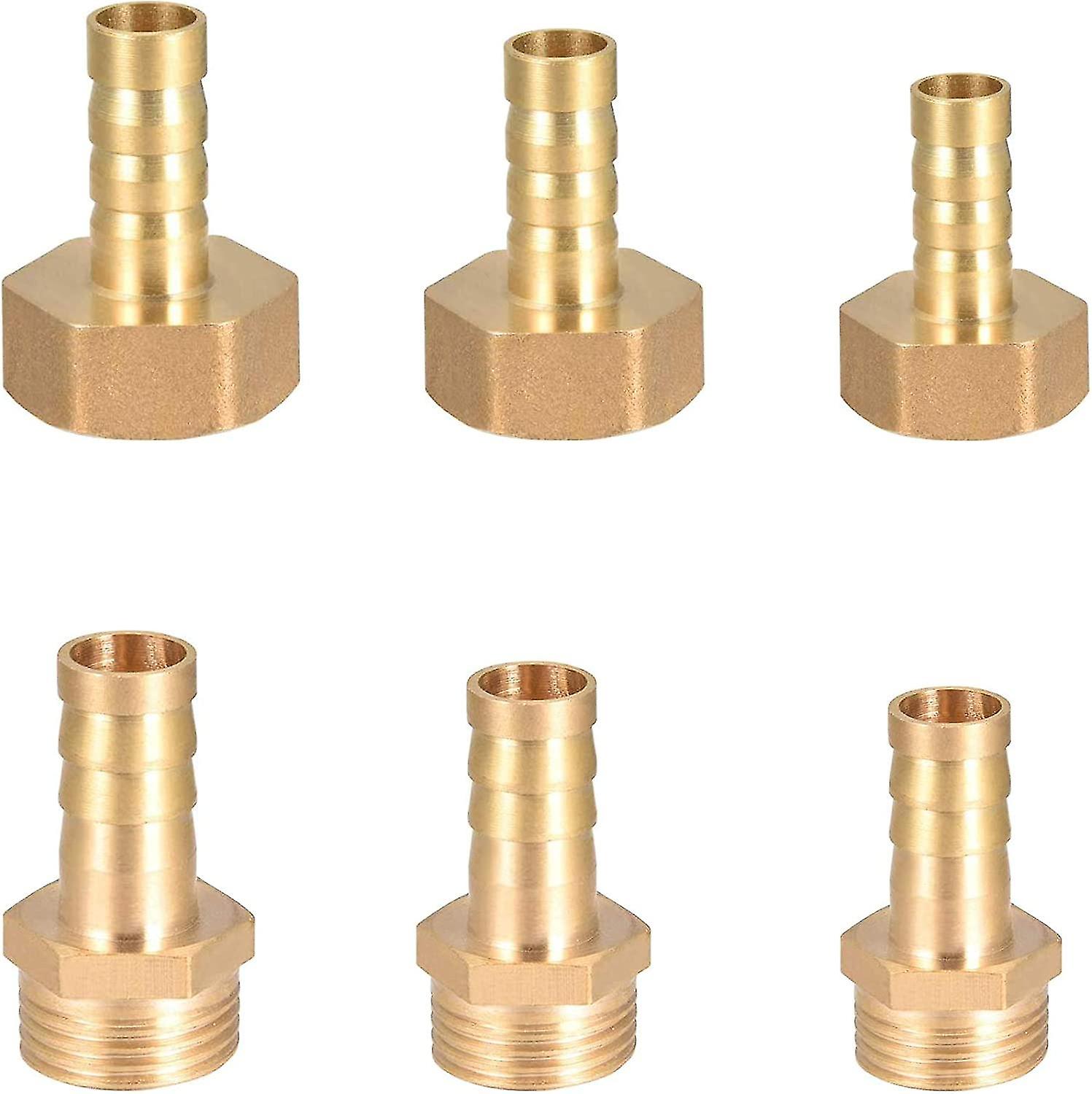 6 Pieces Barbed Wire Fitting Solid Brass Connector, Male / Female Thread. Pond / Pool / Hose Hose Adapters, External Thread & Female Thread