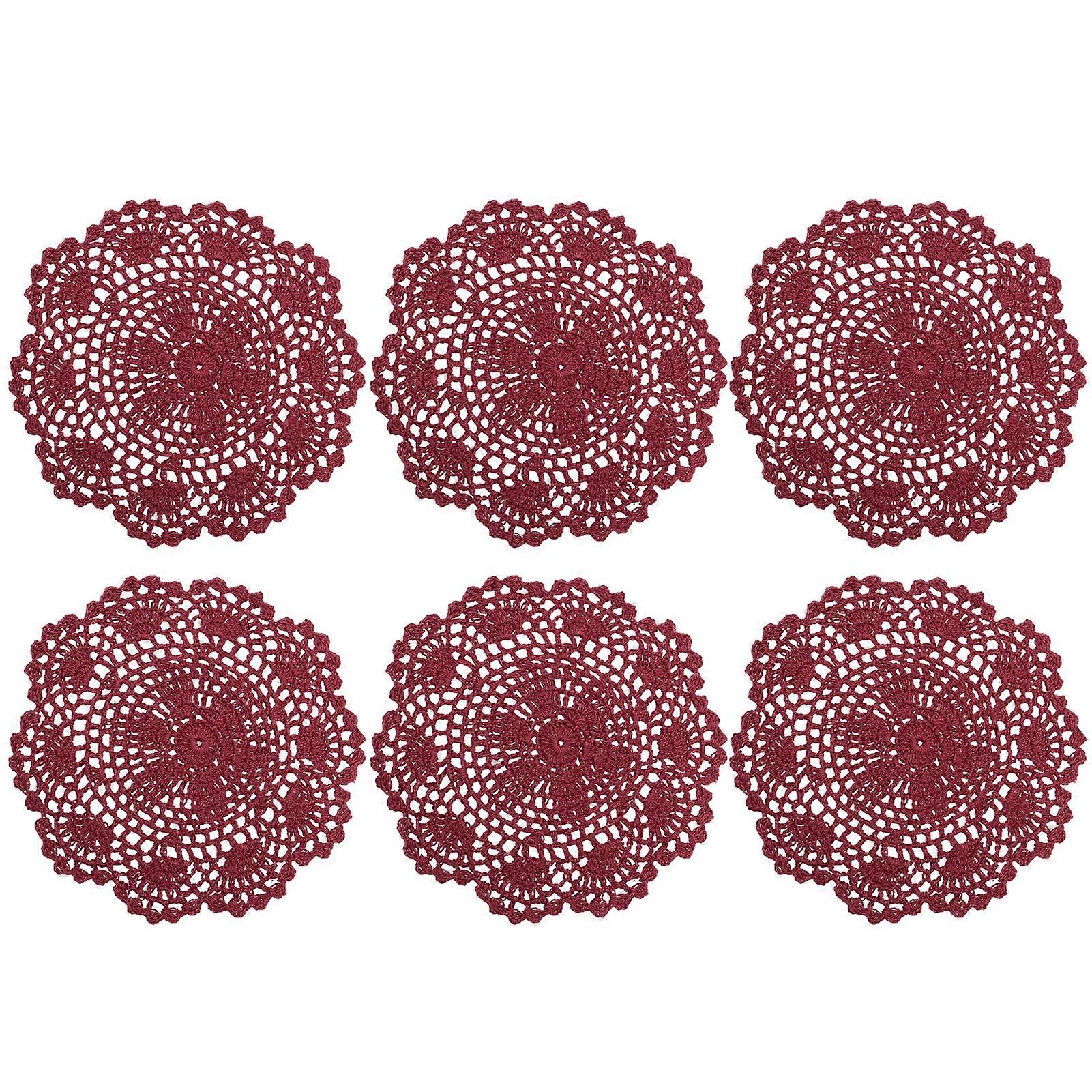 6Pcs Table Mats Hollow Insulated Lace Doilies Crochet Floral Round Coasters Household Supplies KAESI