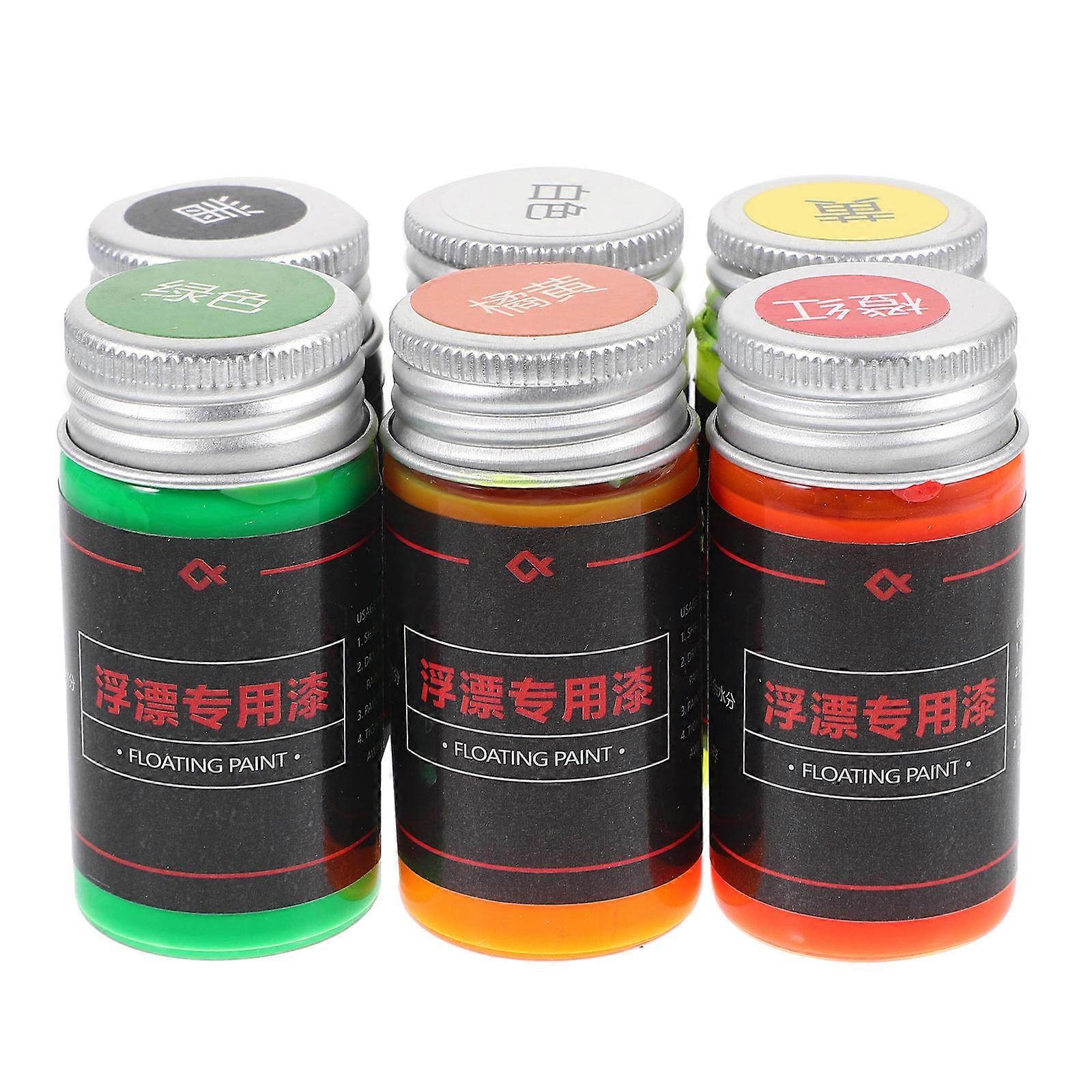 6pcs Fluorescent Fishing Paint Set Durable Bobber Repair Coating for Floats Scratch Resistant Colors Including Orange, Yellow, Black, White, and