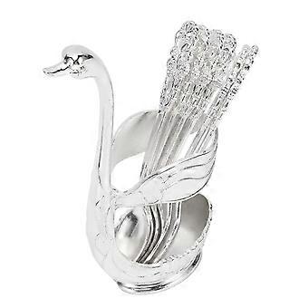 6Pcs Coffee Dessert Spoon Set Metal Swan Base Holder Dessert Spoon Organizer with 6pcs Spoons Teaspoon for Fruit Cake