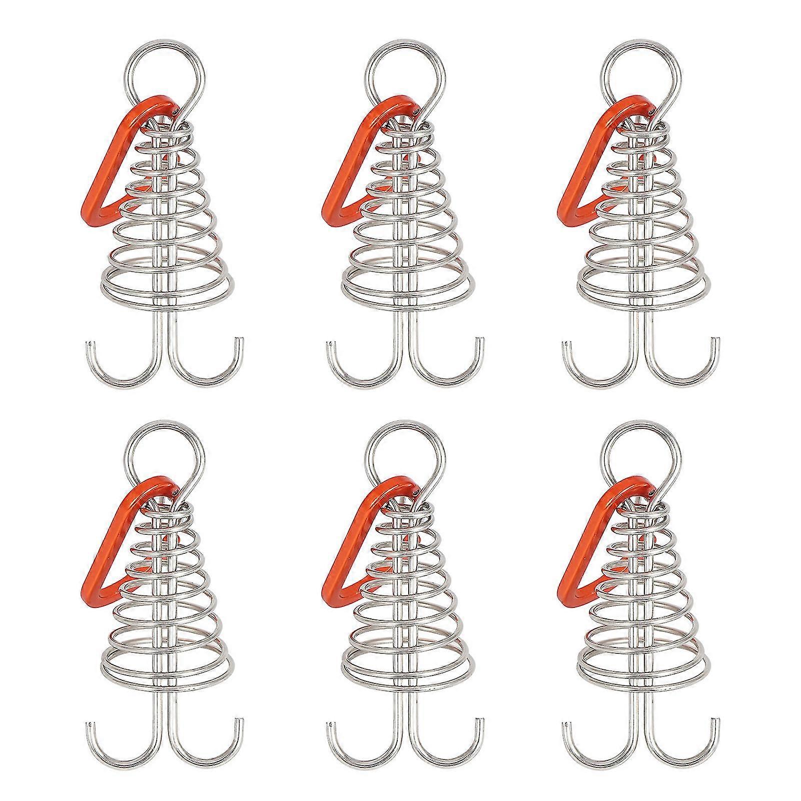 6pcs Plank Hook Spring Adjustable Deck Peg Stainless Steel Hooks Fixed Tent Rope Buckle For Camping And Decking