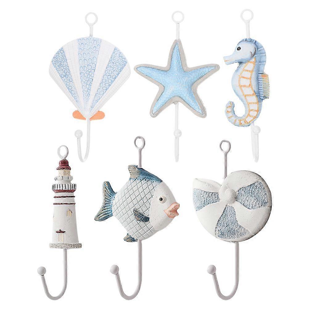 6PCS Ocean Theme Wall Hook Mediterranean Style Wall Hook Towel Wall Hooks