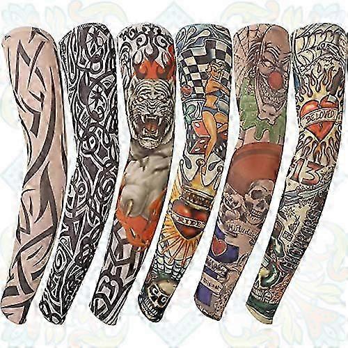 6 Pcs Fashion Nylon Fake Temporary Tattoo Sleeves Arm Stockings Halloween Tattoo Soft For Men Women
