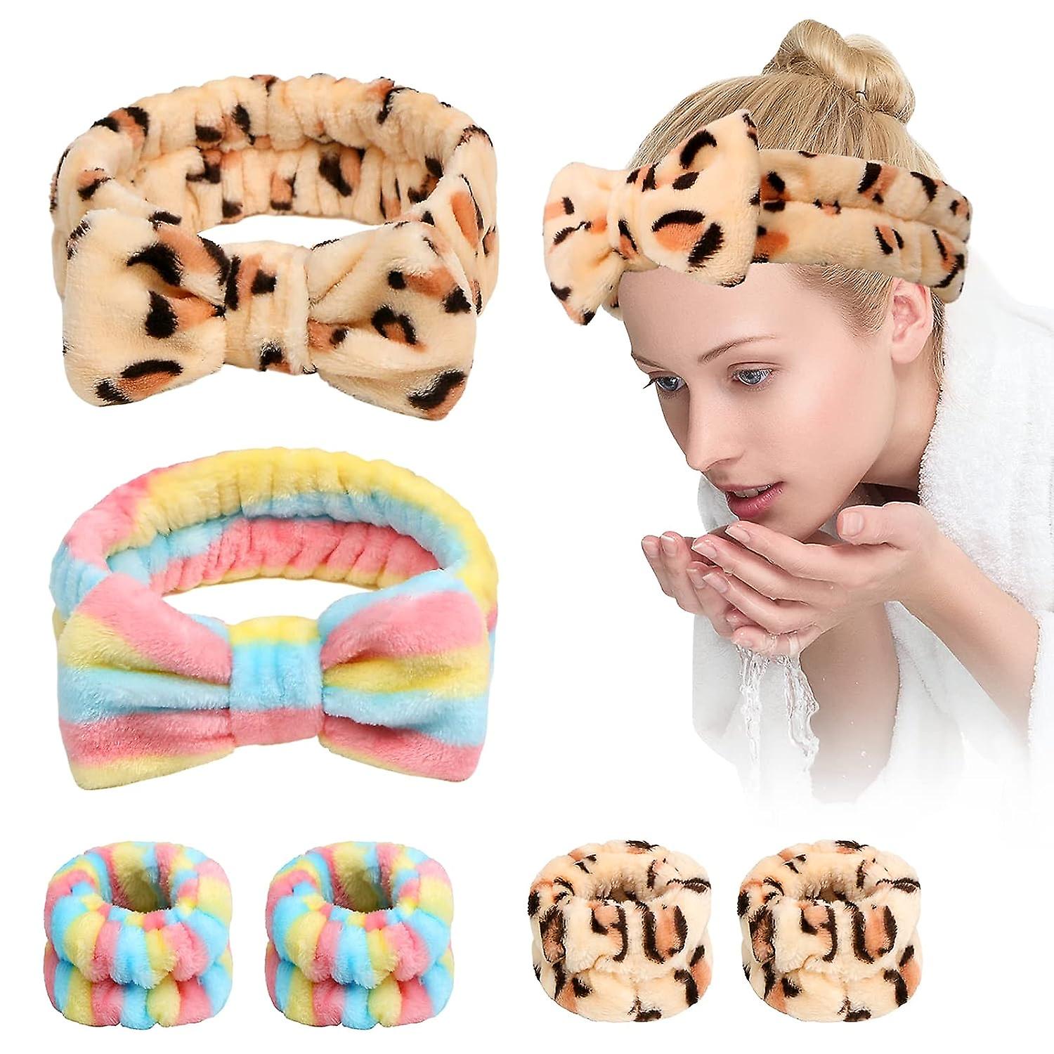 6 Pcs Face Washing Wristbands And Headband Set,makeup Headbands For Women For Wash Face, Skincare,spa,makeup Removal,shower(leopard Print,rainbow)