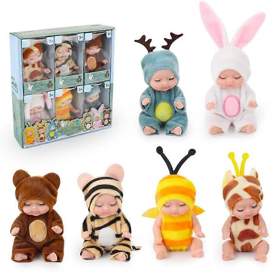 6 Pcs Miniature Reborn Dolls Toys, Mini Sleeping Reborn Dolls with Animal Clothes, 4 Inch