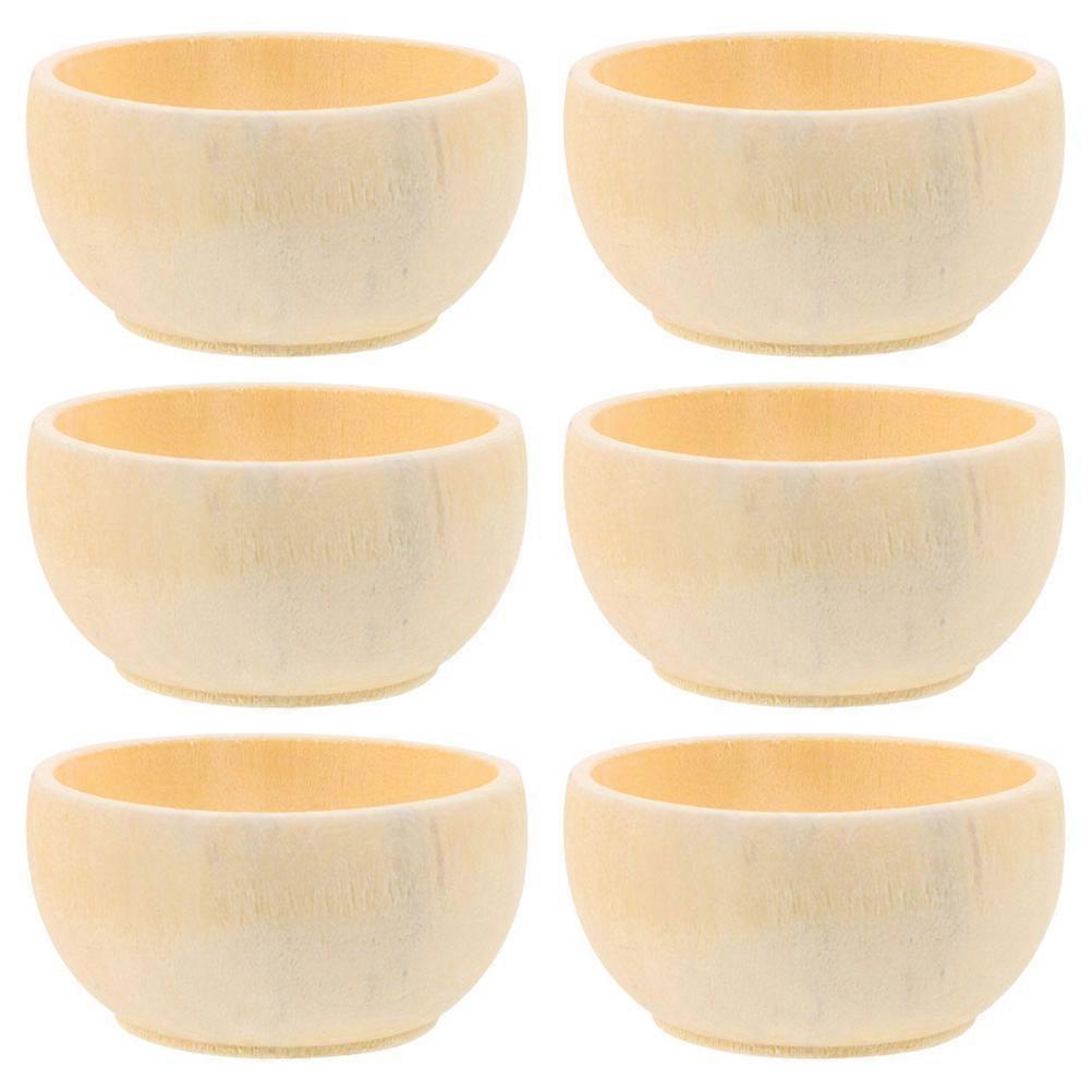 6pcs Unfinished Wooden Craft Bowls for DIY Painting, Smooth Natural Wood Surface, Versatile for Snacks, Trinkets & Home Decoration