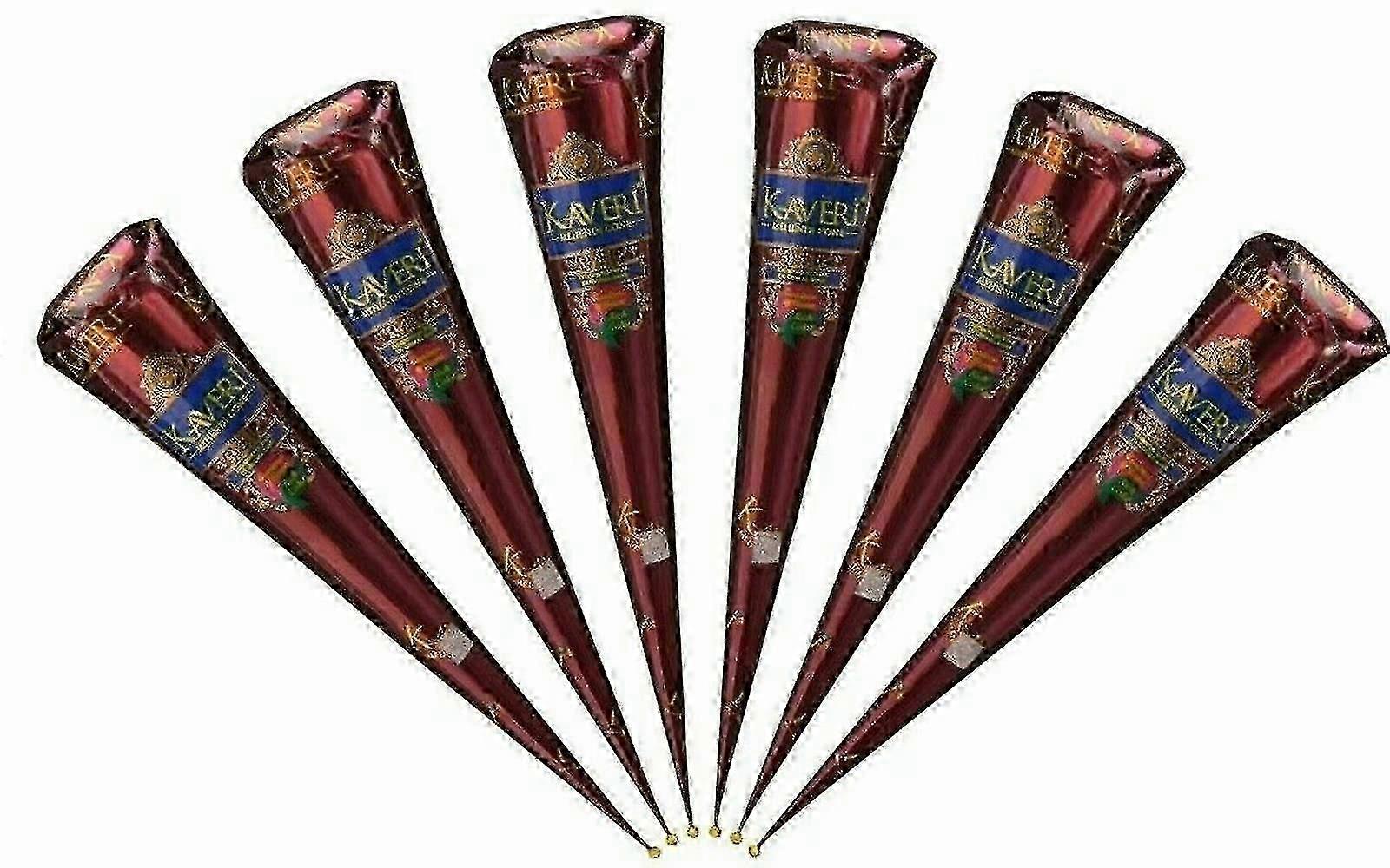 6pcs Fresh Quality Kaveri Dark Brown Natural Henna Mehndi Cones Temperory Tattoos