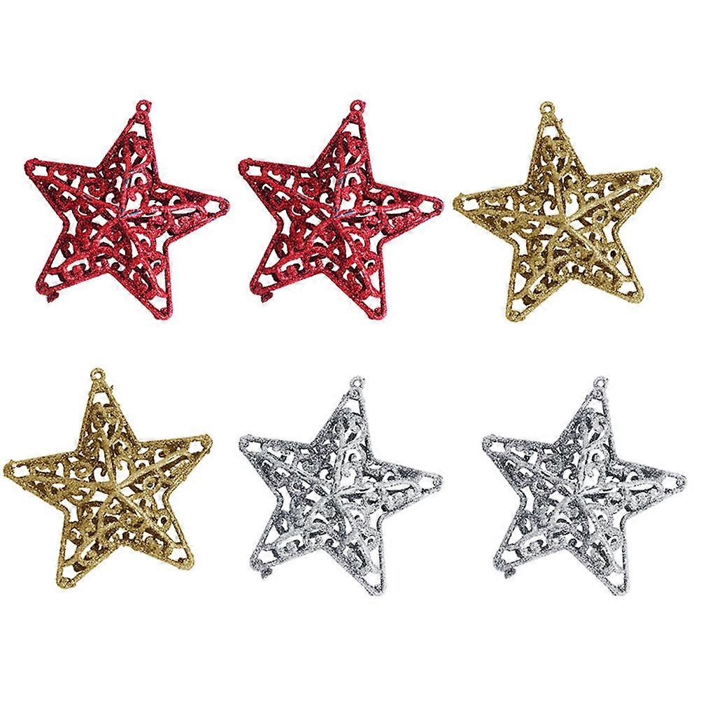 6pcs Vintage Christmas Star Pendant Hanging Decorations for Xmas Tree, Home, Garden, Party, Wedding & Holiday Use – Festive Ornament Set – Random
