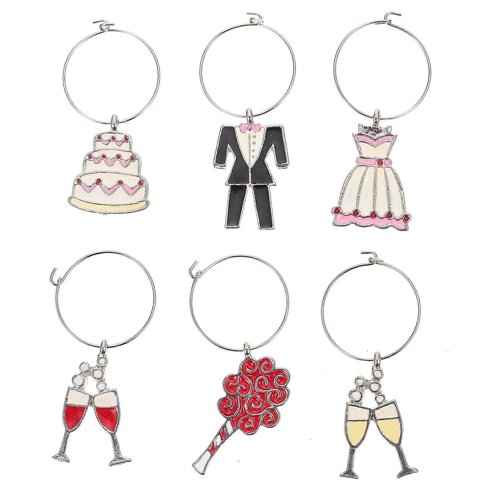 6pcs Adorable Wine Glass Charms Wedding Themed Wine Glass Pendants for Decor