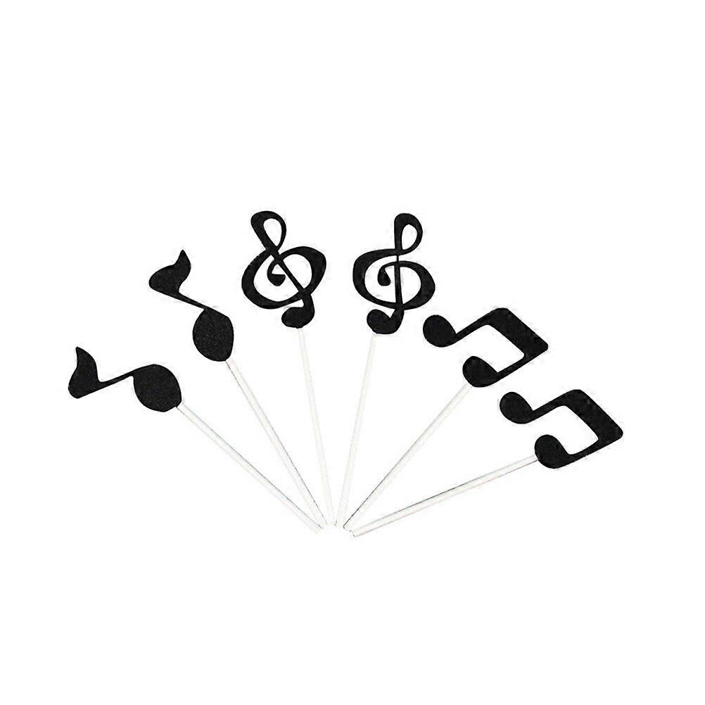 6pcs Music Symbols Notes Cupcake Toppers for Dessert Birthday Party Decor (Black)