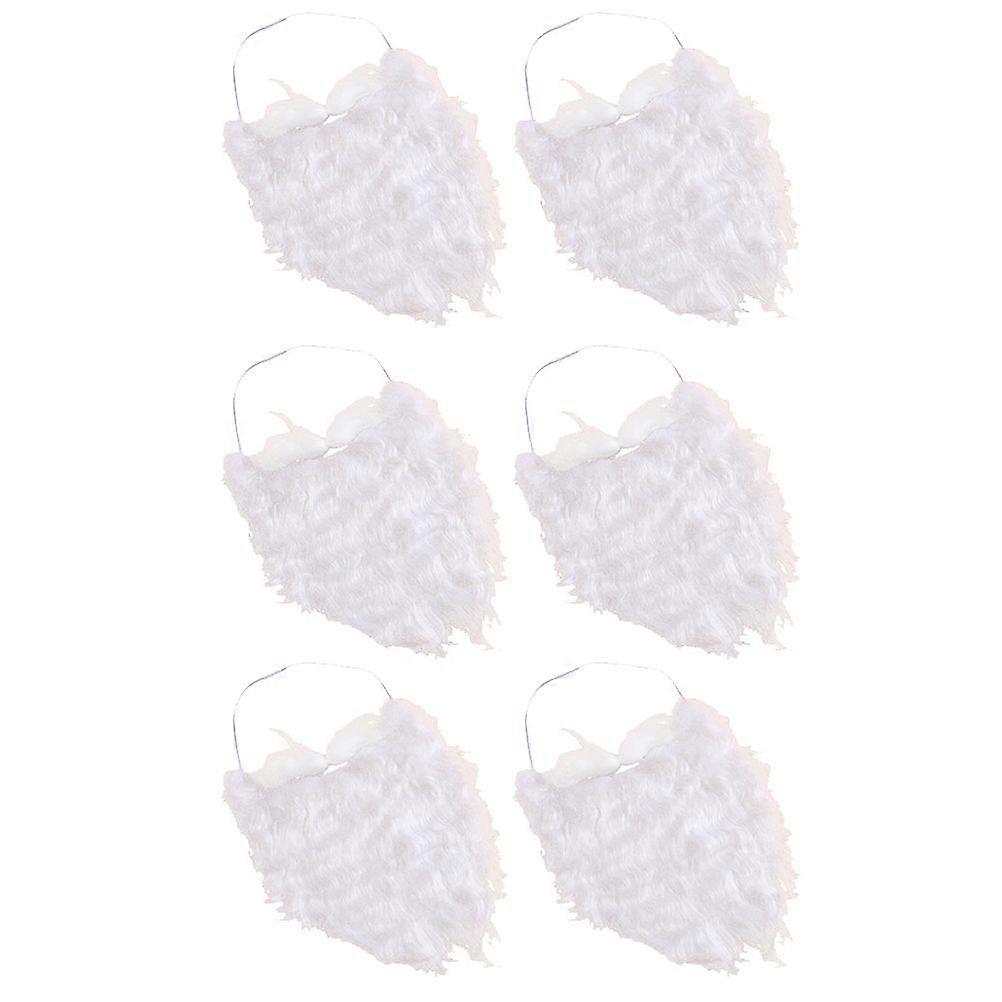 6pcs Santa Mustaches Interesting Fake Beard Face Props Party Supplies Favors for Festival Ball Party (White)