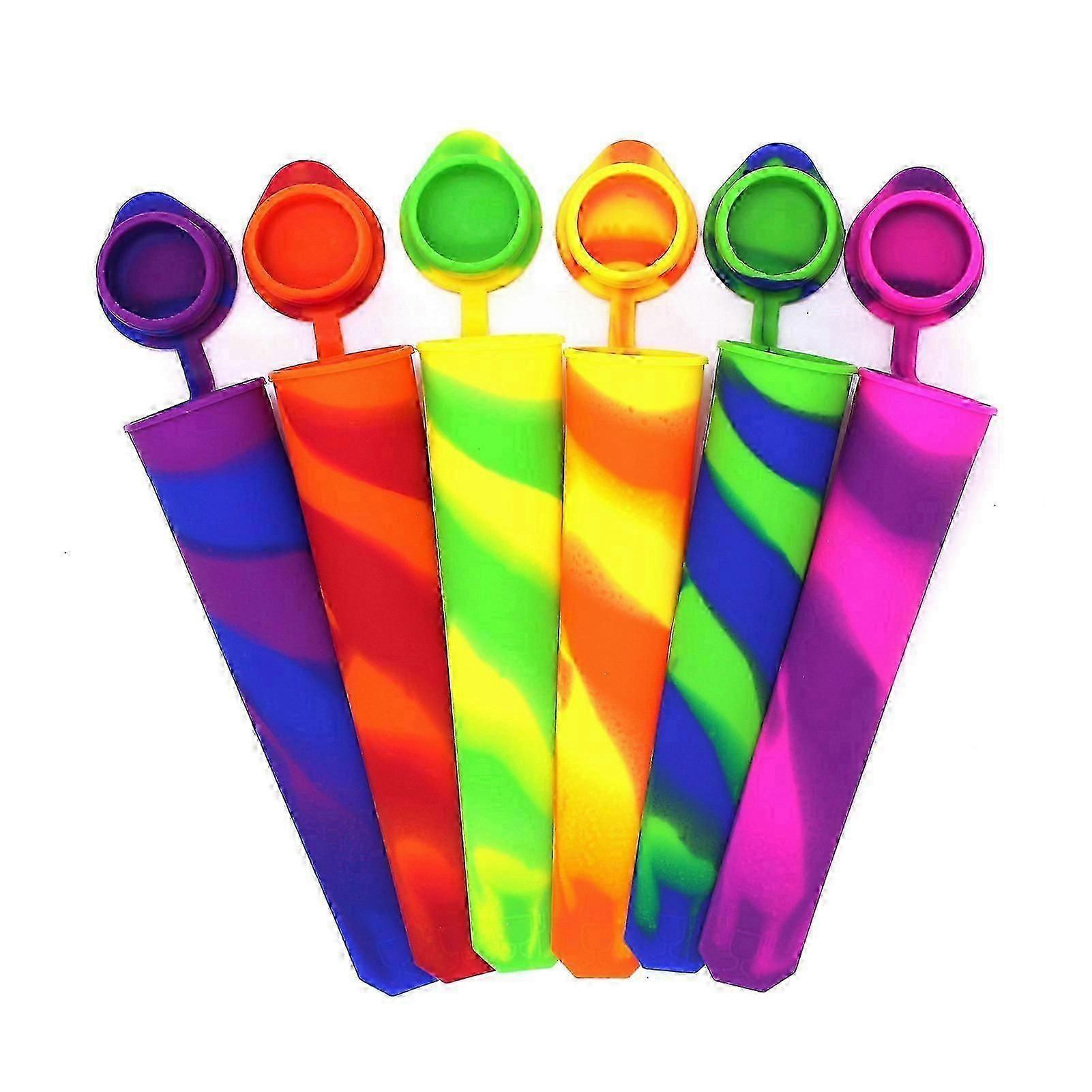 6PCS Silicone Ice Pop Molds Attached Lid Multi Colored Ice Popsicle Molds for Popsicle Yogurt Sticks