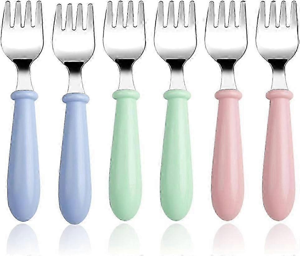 6 Pieces Toddler Forks Baby Forks for Self Feeding, Kids Forks with Round Handle, Stainless Steel Toddler Utensils Children's Safe Silverware Set BPA