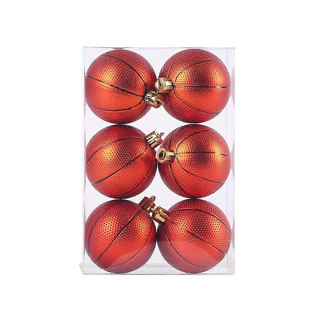 6 Pcs/Box 6cm Christmas Sports Ball Ornaments Xmas Tree Decorations Hanging Pendant for Holiday Party Decor