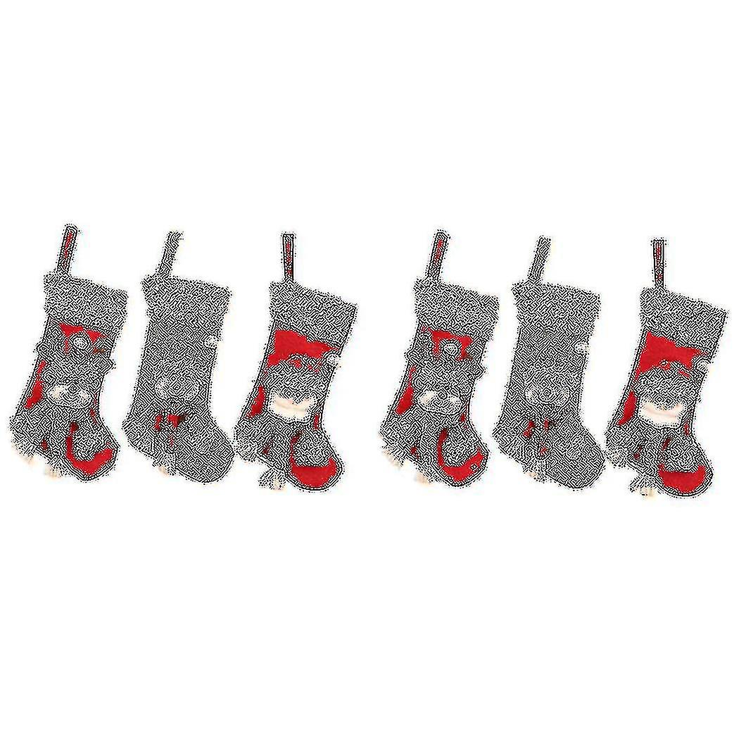 6 Pcs Christmas Stocking Santa Claus Candy Sock Gift Bag Xmas Tree Hanging Decor Bag