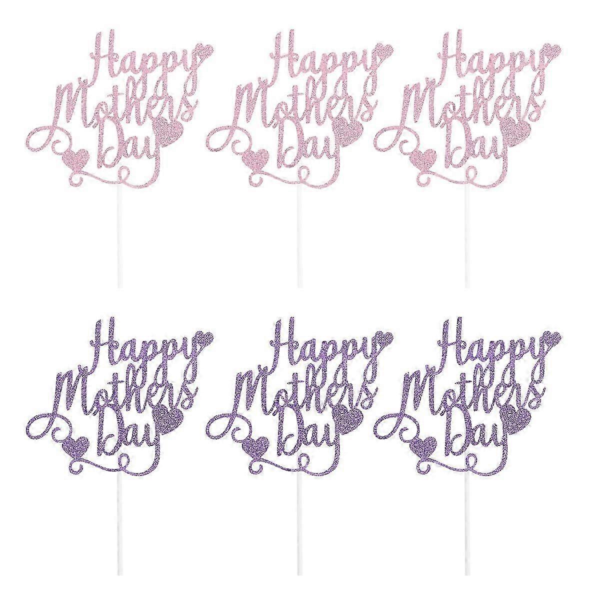 6pcs Happy Mother's Day Cake Topper Meaningful Cupcake Ornament Picks Cake Decor Dessert Adornment for Home Party (Pink + Light Purple)