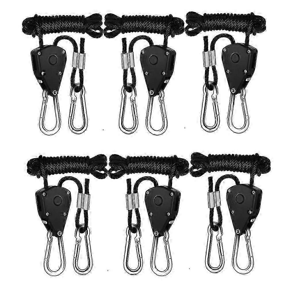 6pcs Adjustable 1/8-inch Rope Ratchet Pulley Hanger for Tent Fan & LED Grow Lamp