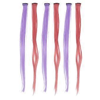 6 Pcs Hat Wigs Women Clip Extensions Colored Hair Streak Colored Straight Hairpiece