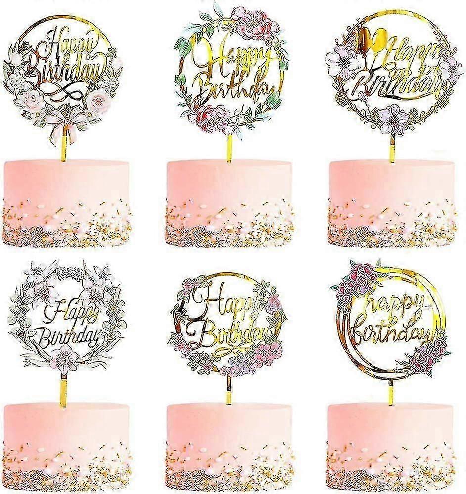 6 Pieces Happy Birthday Cake Decorating Gold Flower Acrylic Cake Decorating Acrylic Cupcake Decorating Various Birthday Party Anniversary Cake Decorat