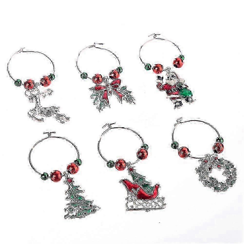 6pcs/ Set Cup Ring Decorations Markers Charms Christmas Party Glass Pendant(C)