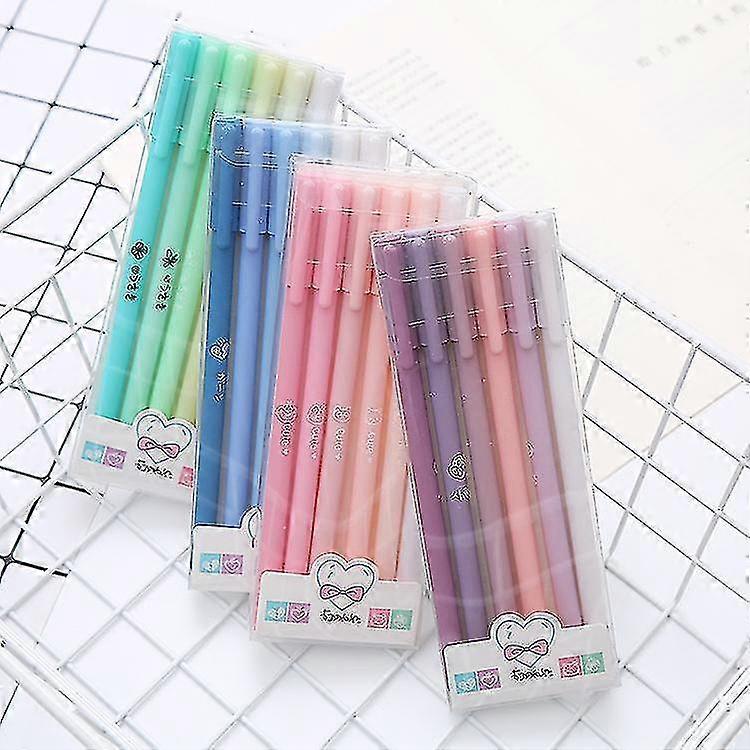 6pcs/set Cute Kawaii Stationery 0.5mm Black Ink Gel Pens Morandi Color Handle Pens For Doodle School Office Supplies