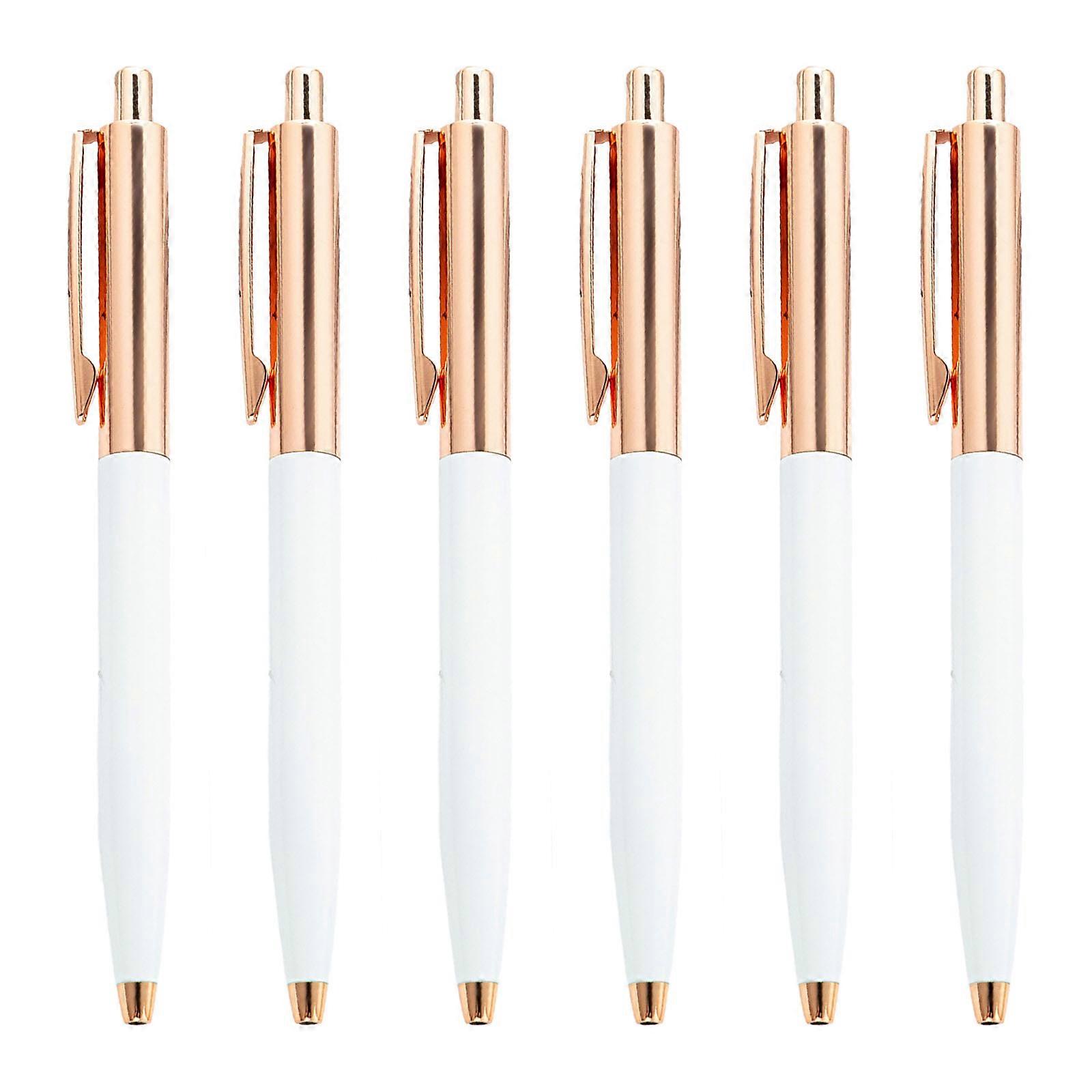 6Pieces Metal Ballpoint Pen Office Signing Pen Retractable Ballpoint Pen Refillable Write Smoohtly Business Gift Pen White