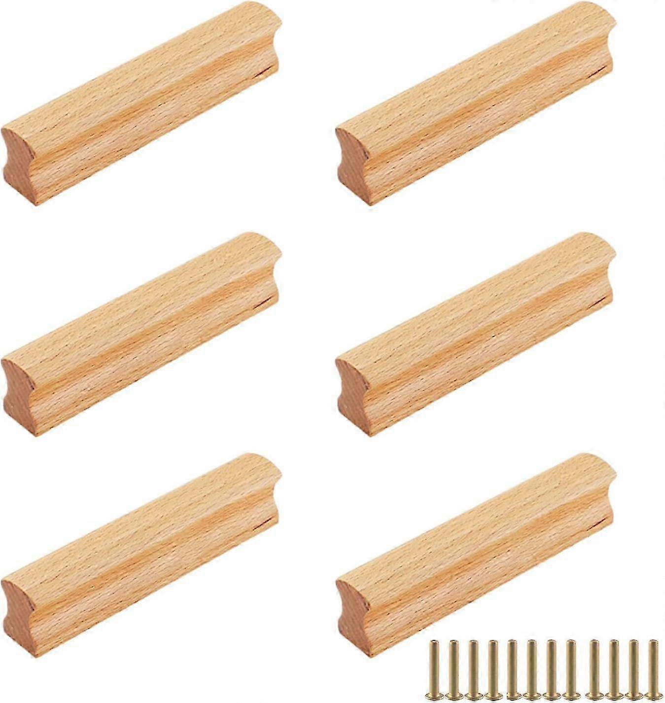 6 Pieces Wooden Furniture Handle, Hole Spacing 96 mm, Wooden Handle with Screws, Wooden Drawer Handle for Wardrobe, Dresser, Drawer