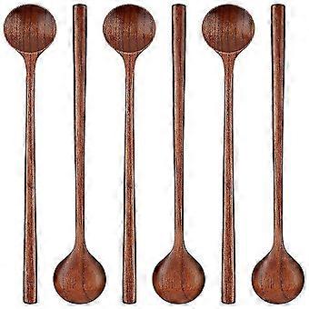 6 Pieces Wooden Long Spoons Long Handle Round Spoons Korean Style Soup Spoons For Soup Cooking Mixi