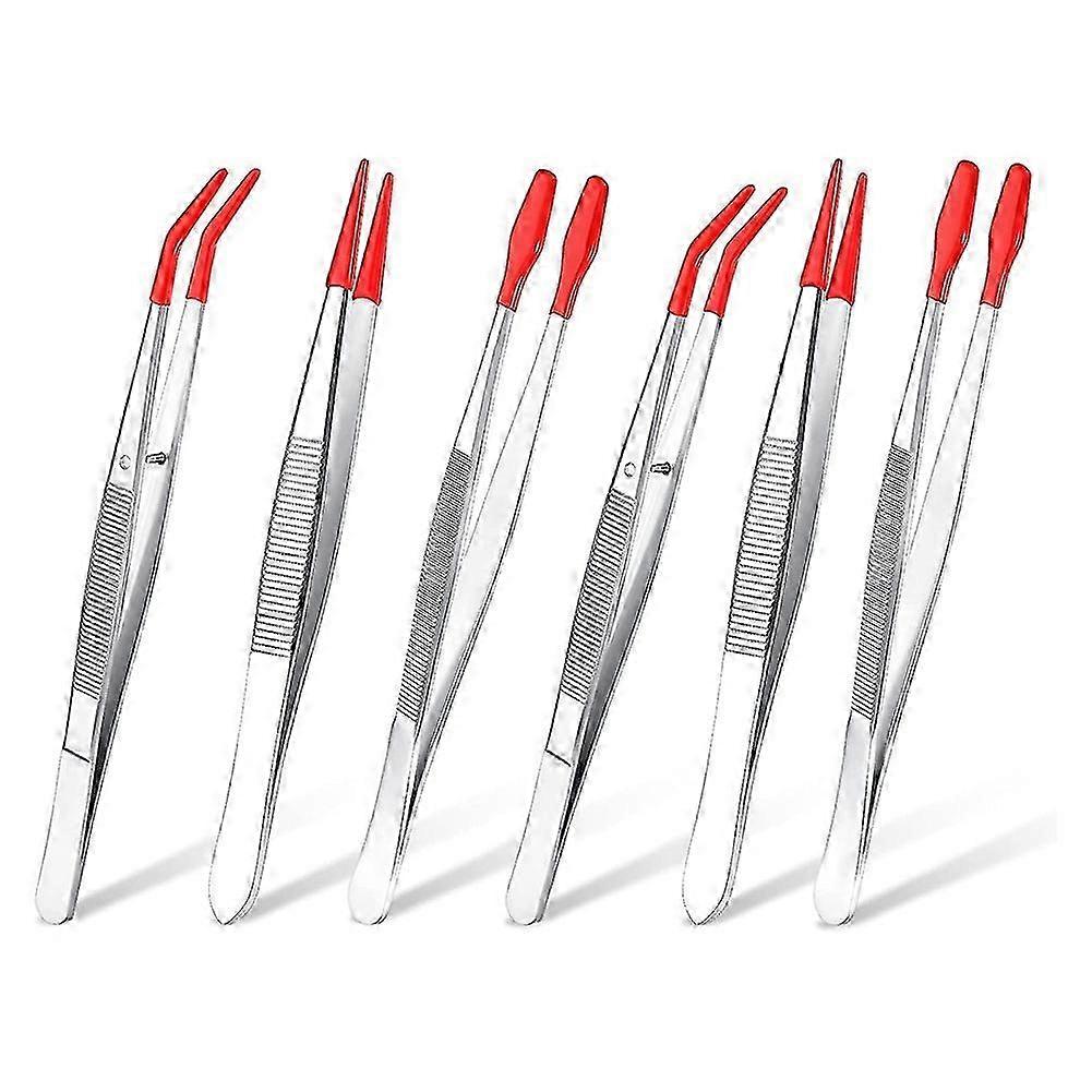 6Pcs Tweezers with Rubber Tips Set Soft PVC Rubber Coated Tips Bent and Straight Flat Tip Precision