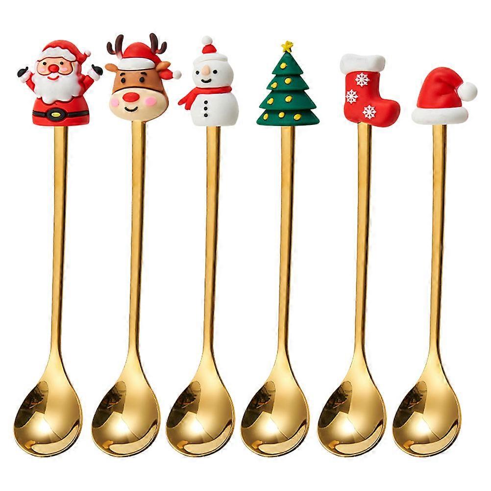 6pcs Christmas Spoon Christmas Stirring Spoons Stainless Steel Coffee Spoons Xmas Spoons
