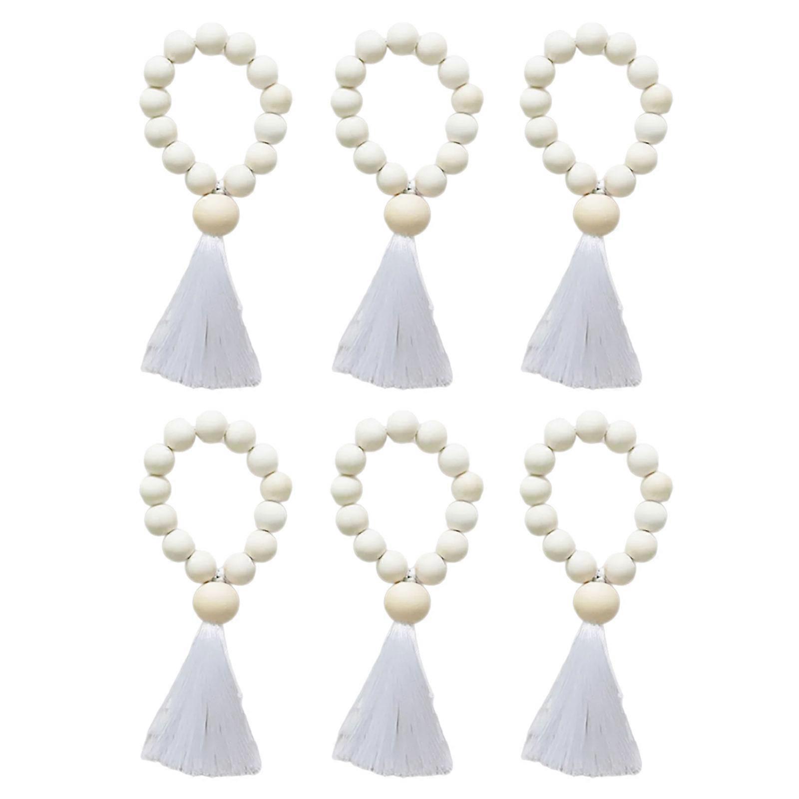 6Pcs Napkin Rings with Wood Beads Green Plant Napkin Holders Handmade Serviettes for Banquets and Family Gatherings