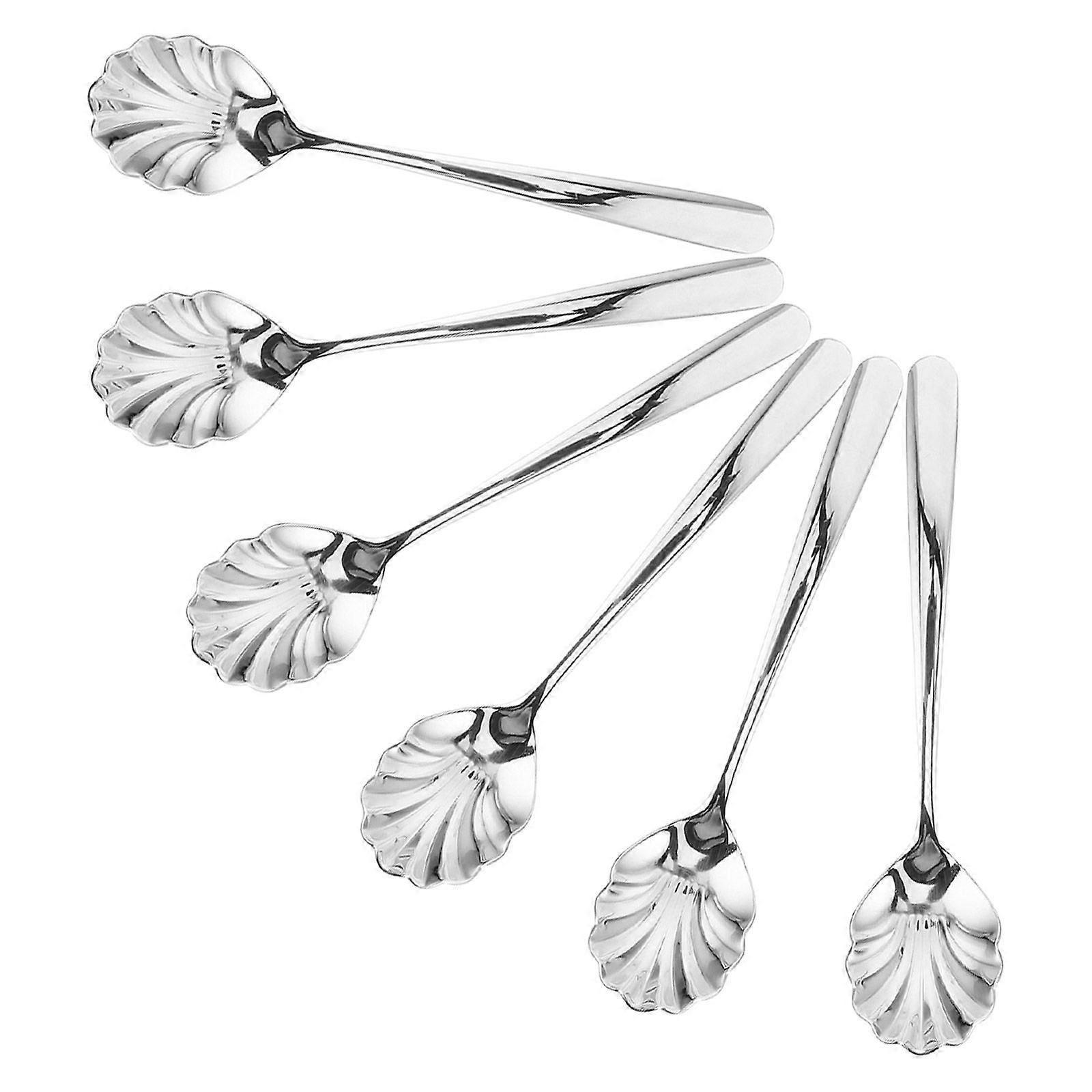 6pcs Stainless Steel Shell Shape Dessert Spoons Elegant Scalloped Shape Coffee Spoons for Hotels and Cafes for Ice Cream Pudding Yogurt Oatmeal Cake