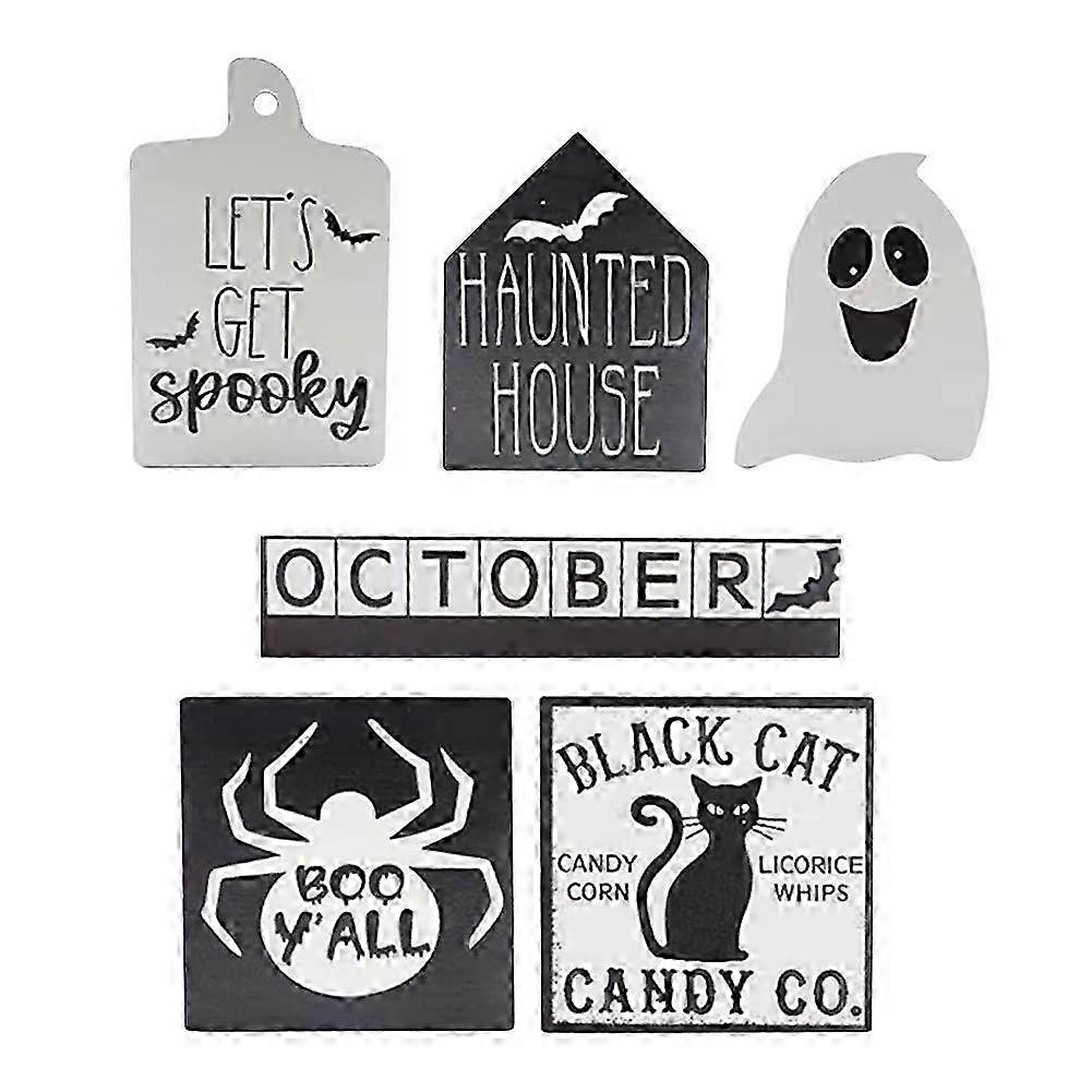 6Pcs Halloween Tier Tray Decorations PVC Spooky Tier Shelf Decoration Autumn Tiered Tray Decoration Home Partys Supplies