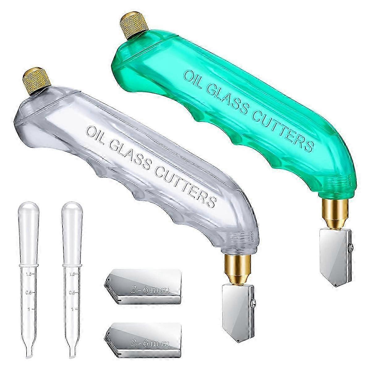 6 Pcs Grip Oil Feed Glass Cutter Stained Glass Supplies Cutters Tools and 2-6mm Cutting Heads (Green, White)