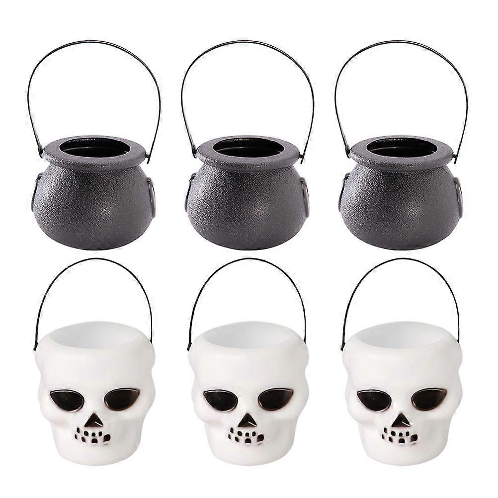 6PCS Halloween Candy Bucket Skull Shaped Witch Jar Candy Holder Halloween Basket for Party Decorations Festival Treats White Black
