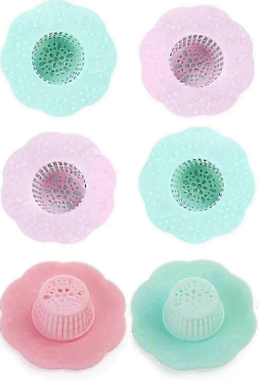 6 Pieces Flower Shaped Drain Strainer Drain Protectors, Pink and Green