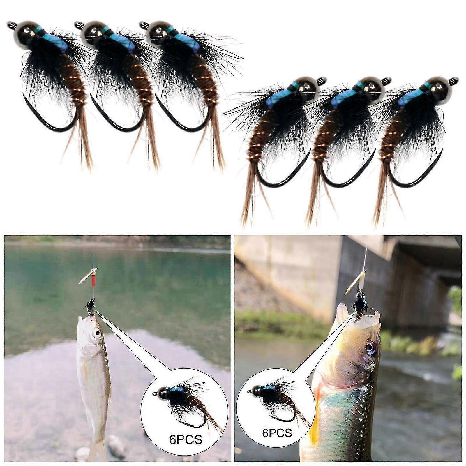 6PCS Fly Fishing Flies Fly Fishing Lures Tenkara Flies Waterproof Fly Box Size #8 #10 #12 Barbed Hook Tenkara Fishing Fly