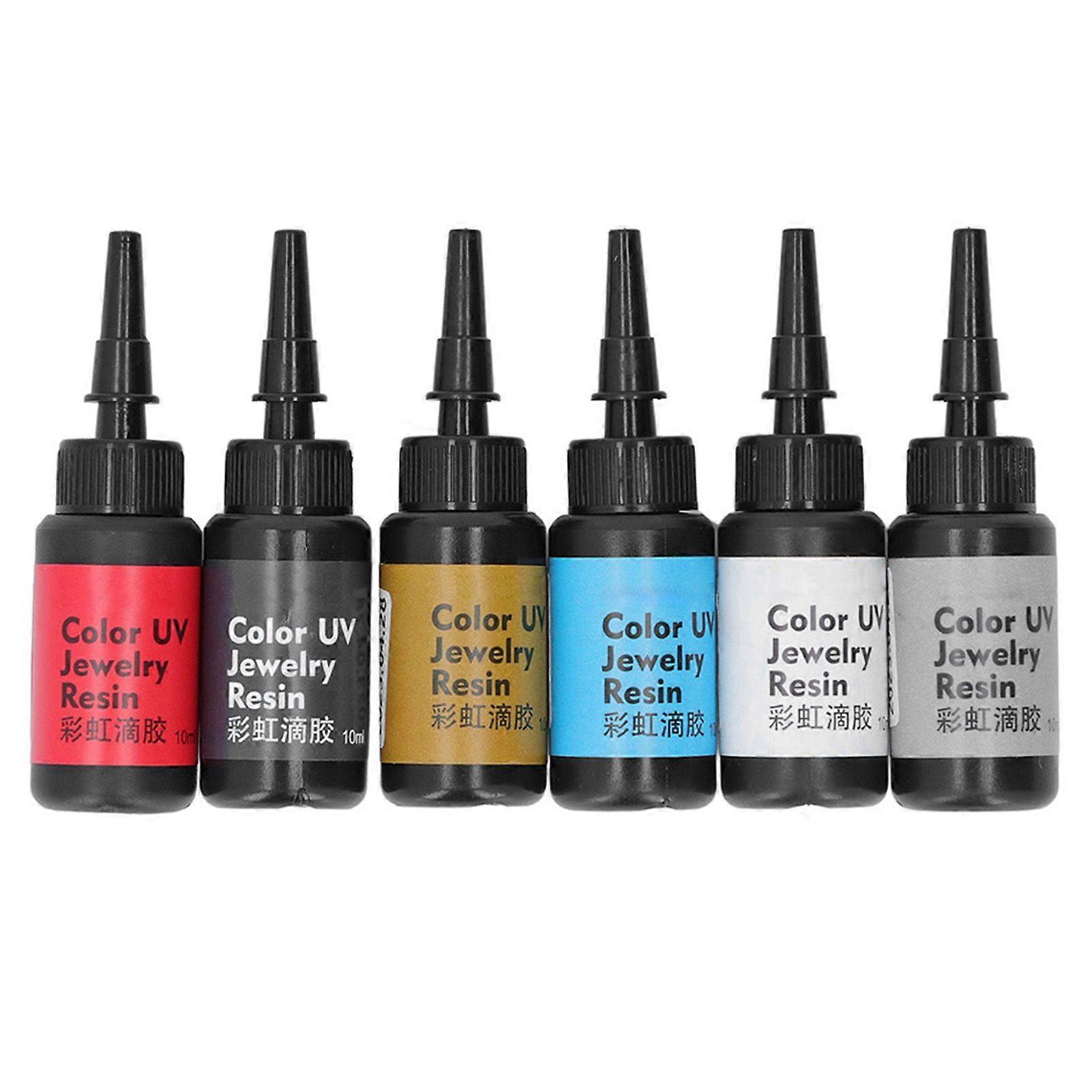 6Pcs 10ml UV Resin Easy Operation Quick Curing Bright Vivid Color Widely Used UV Epoxy Resin for DIY Jewelry Set D (White, Silver, Gold, Black, Red, L