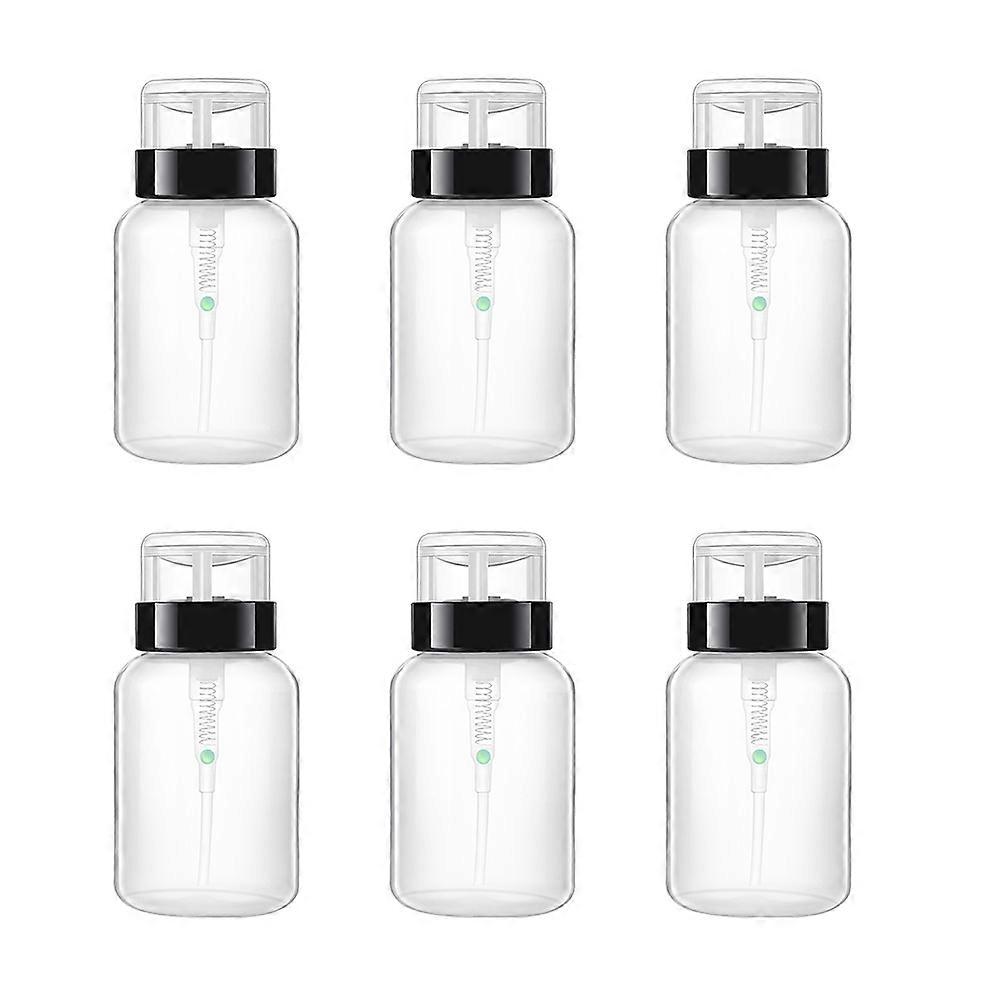 6pcs 200ml Plastic Lockable Nail Polish Remover Press Pumping Bottle Liquid Subpackage Storage Bottle Dispenser Container (No Word Black Bottle Mouth)