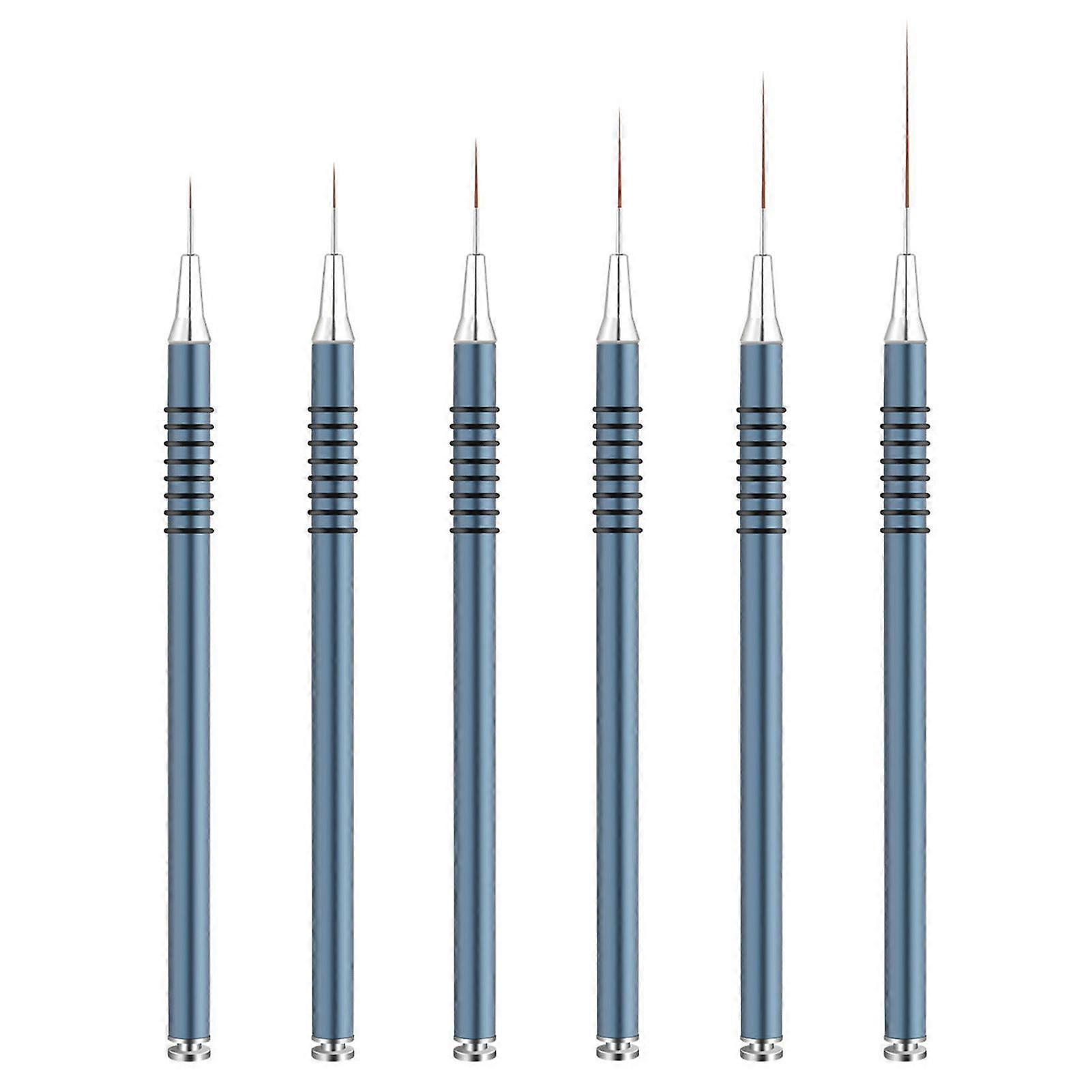 6Pcs 5/7/9/11/20/25MM Nail Liner Brush Ultra-fine Nylon Metal Handle Portable Beginner Professional DIY Nail Art Detail Design Color Drawing Dotting P