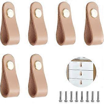 6 Leather Handles - Leather Furniture Handles with Screws Accessories - Cupboard Pulls for Cabinet, Kitchen and Door
