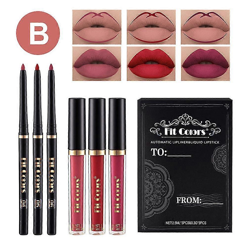 6pcs/set 3+3 Lip Liner & Liquid Lipstick Kit Waterproof Matte Lip Liner Pen Lip Gloss
