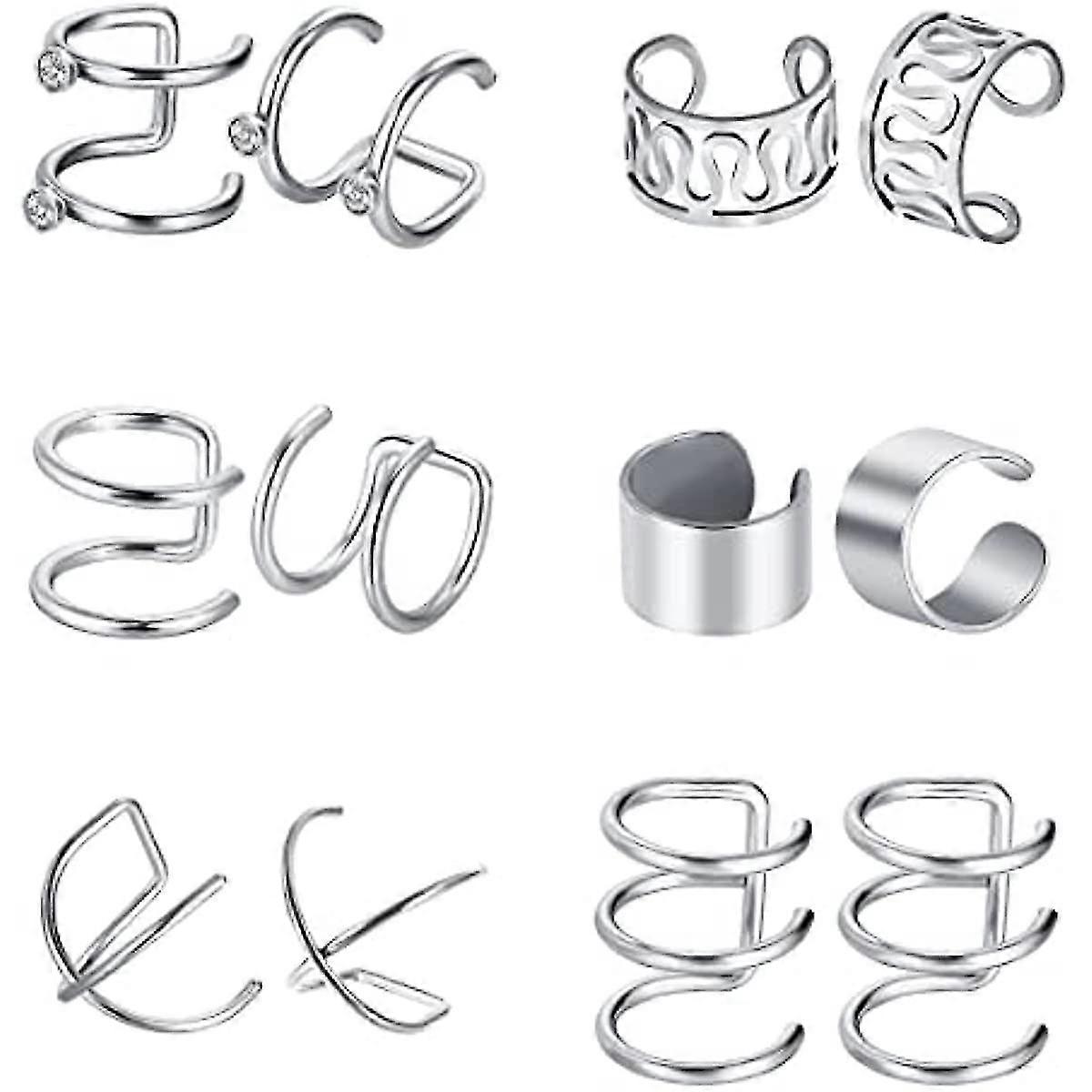 6 Pairs Stainless Steel Ear Clips Non Piercing Earrings Hoop Ear Cuffs Cartilage Ear Clips Set For Men Women, 6 Various Styles