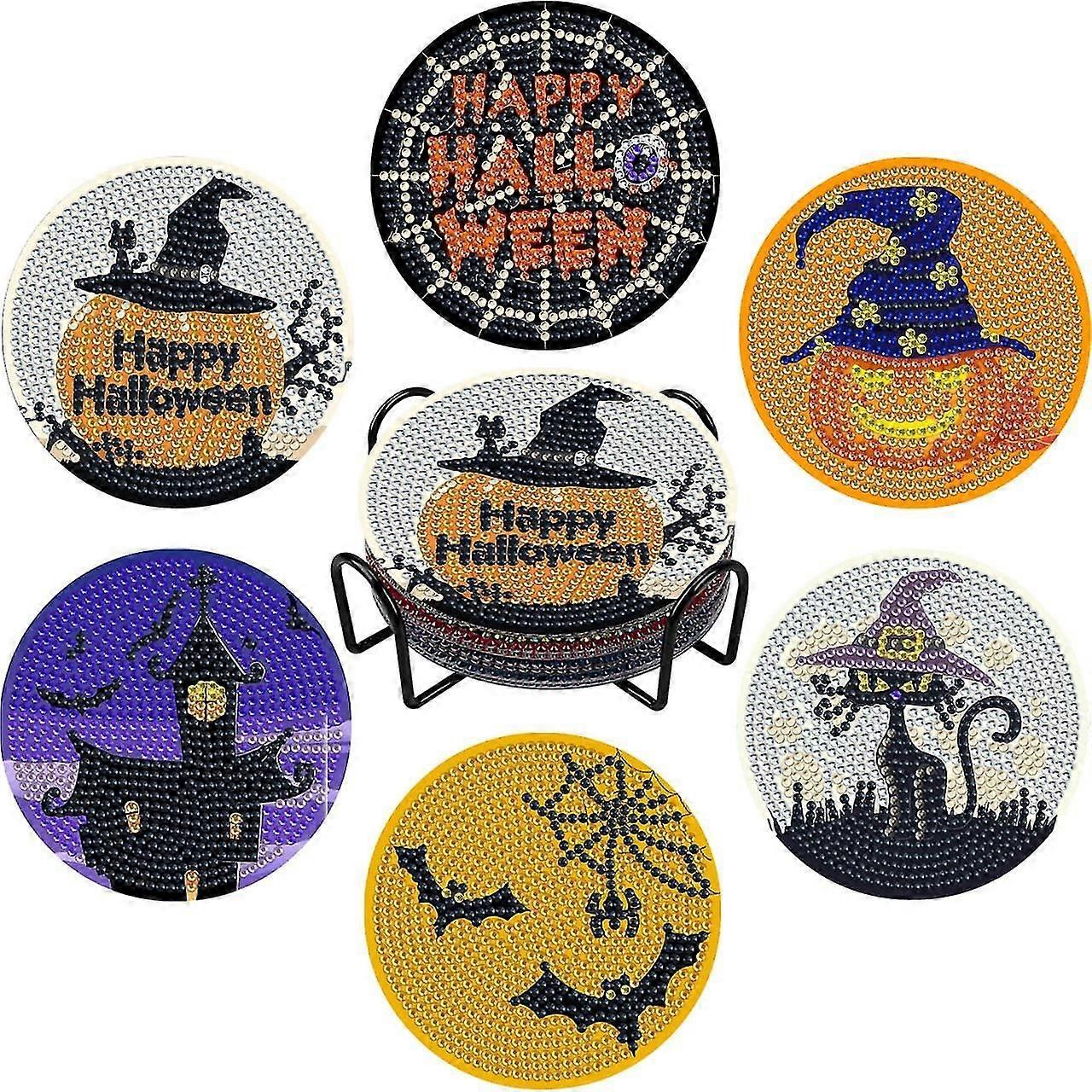 Halloween Diamond Painting Coasters Kits, 6pcs Halloween Diamond Painting Coasters With Holder, Diy Coasters