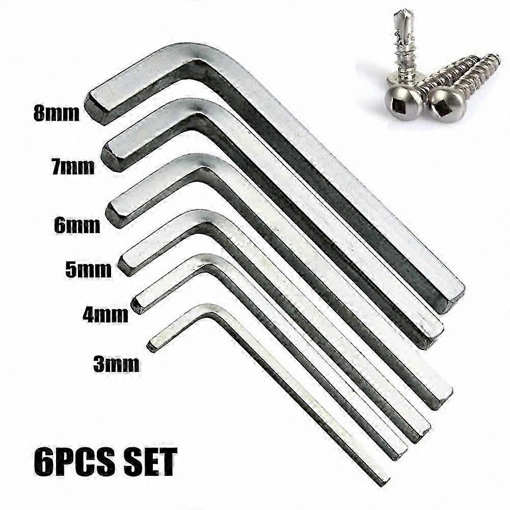6-Piece L-Shaped Square Wrench Set, 4-Point Screwdriver Keys, 3-8mm Size Range